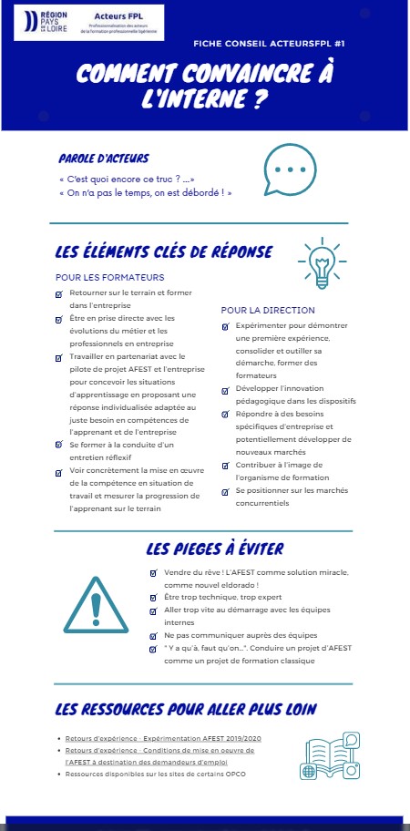 Acteurs FPL met à disposition des organismes de formation, 7 fiches conseil qui pourront vous aider à intégrer l’AFEST dans vos dispositifs de formation.
