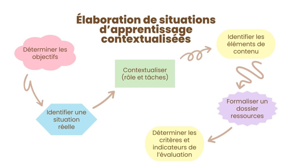 La méthodologie suivante peut-être recommandée afin d'élaborer des situations d'apprentissage contextualisées :