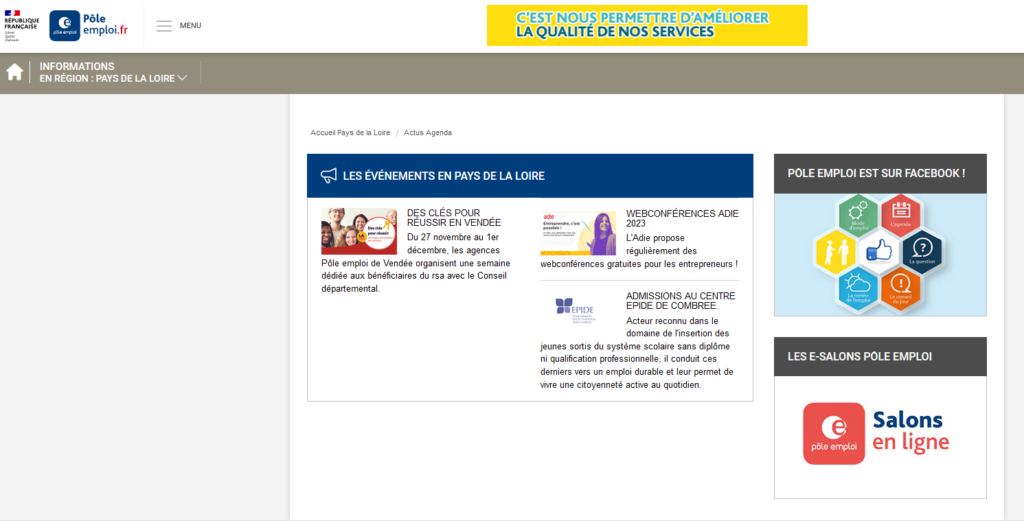 Accueil Mission 1 Mission 2 Mission 3 Développement d'un réseau d'entreprises et animation de partenariats Sites internet Vidéos Outils Des sites internet à visiter Les besoins des entreprises La bonne boite - Pôle emploi DATA - Panorama pour le Territoire - Pôle emploi Pays de Loire Les portraits sectoriels - Carif Oref Veille métiers et secteurs - Carif Oref Portraits statistiques de branches professionnelles - Dares Travaux des observatoires des branches professionnelles - La grande bibliothèque Secteurs d'activités - Direction Générale des entreprises Centre de documentation Économie Finance - CEDEF Enquête annuelle sur le Besoin de Main d'Oeuvre (BMO) - Pôle emploi Démarchage des entreprises Fiche pratique comment démarcher les entreprise - ADIE 7 façons de prospecter sur Linkedin - Uptoo Établir un plan de prospection en 5 étapes - Huspot Inscription à des évènements Les jeudis de l'intérim et du recrutement - Prism'emploi Les évènements de Pôle emploi Pays de la Loire Agenda foire, salon en Pays de la Loire - Infolocale Les évènements près de chez vous - Choisir mon métier en Pays de la Loire Les Rendez-vous emploi à Angers - ALDEV Les Rendez-vous emploi à Nantes - evous Vidéos Démarchage des entreprises Prospection téléphonique : les 10 étapes d'un argumentaire téléphonique efficace - Jean-Pierre GIRAUD Élaborer un plan de prospection - Massamba DIADHIOU Les clés de la réussite en prospection commerciale - Technique de vente - Cornak Entreprise accueillante de quoi s'agit-il ? - RSE Nantes Des outils à adapter Des exemples d'outils pour constituer le réseau de partenaires Exemple annuaire des entreprises Exemple de convention de partenariat - Université de Lille 1 Des exemples d'outils pour animer le réseau de partenaires Exemple d'affiche pour un forum de l'emploi - Pays de Chantonnay Exemple d'affiche pour un Job dating - PDLPA Exemple d'affiche pour une journée portes ouvertes - Grafipolis Exemple d'affiche pour un Petit déjeuner entreprises - PROTEC Industries Exemple d'affiche pour des tables rondes métiers - Ville de DOMFRONT-EN-POIRAIE Retour au menu